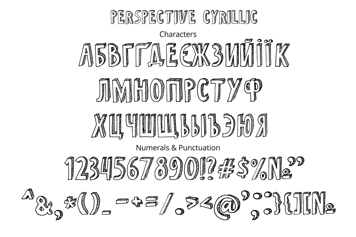 New hand drawn font – PERSPECTIVE with latin and cyrillic letters! PERSPECTIVE font contains latin and cyrillic letter sets, numerals and punctuation. This font work nicely for all sorts of things including t-shirt design, typographic art, social media images and so much more!
