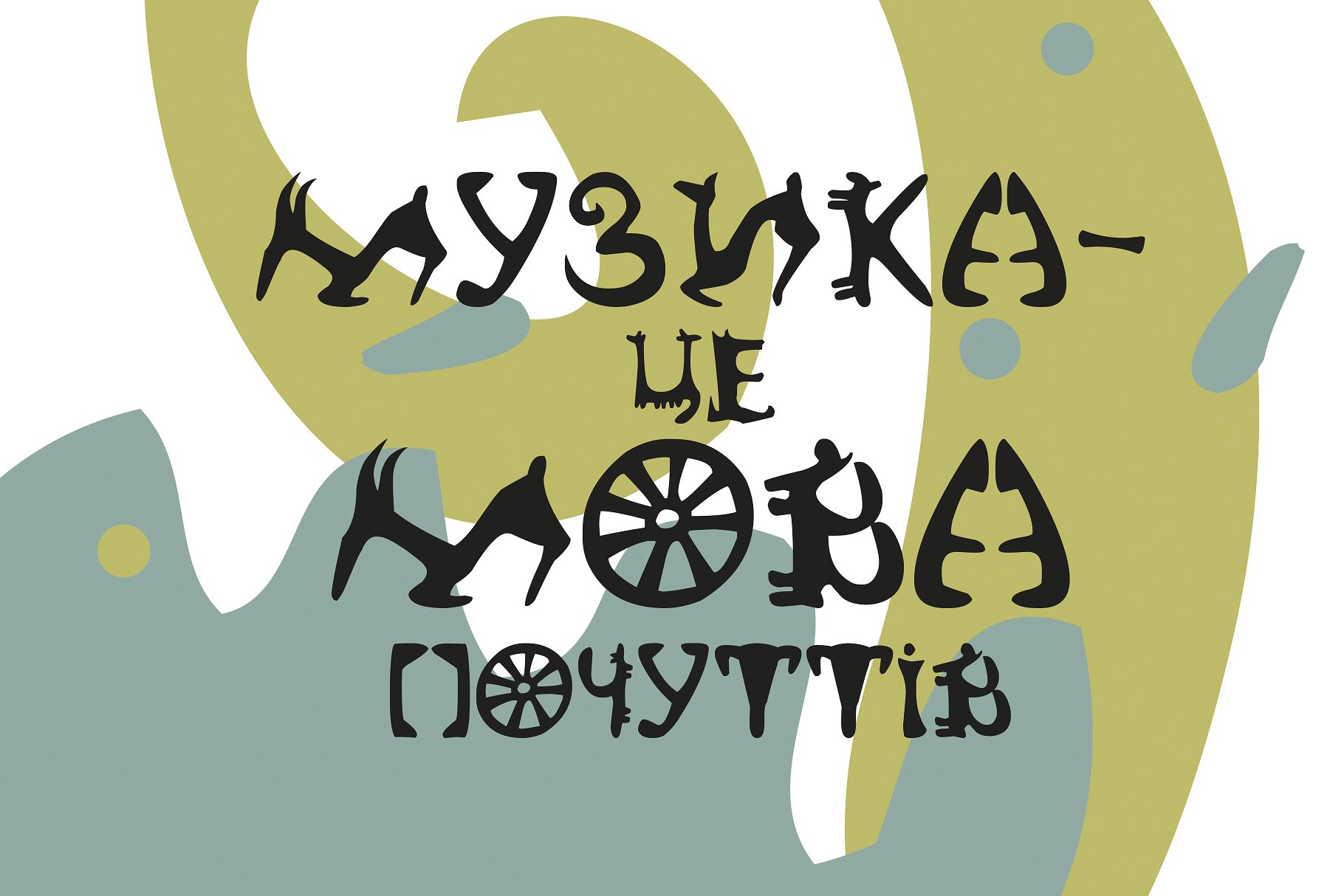 Font features: Standard characters A-Z, 0-9, and punctuation for the Latin Basic and Western European set, Cyrillic А-Я set, additional letters for the Ukrainian language.